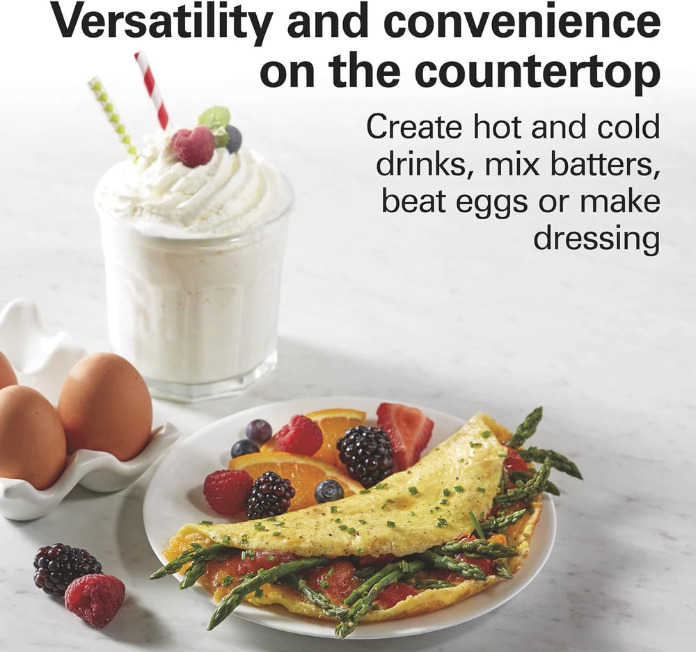 La batidora Hamilton Beach 730N es ideal para preparar malteadas, chocomiles y licuados con rapidez y consistencia uniforme. Cuenta con 2 velocidades que se adaptan a diferentes texturas, además de un vaso de 0.82 litros de capacidad, resistente y fácil de limpiar. Su diseño clásico en color gris ofrece practicidad y estilo para el uso diario en el hogar.