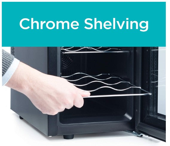 Su diseño incluye puerta de vidrio de triple panel , que ayuda a mantener la temperatura interna y permite exhibir tu colección. Cuenta con 3 estantes cromados extraíbles , iluminación interior y control electrónico con pantalla LED para ajustar la temperatura fácilmente.