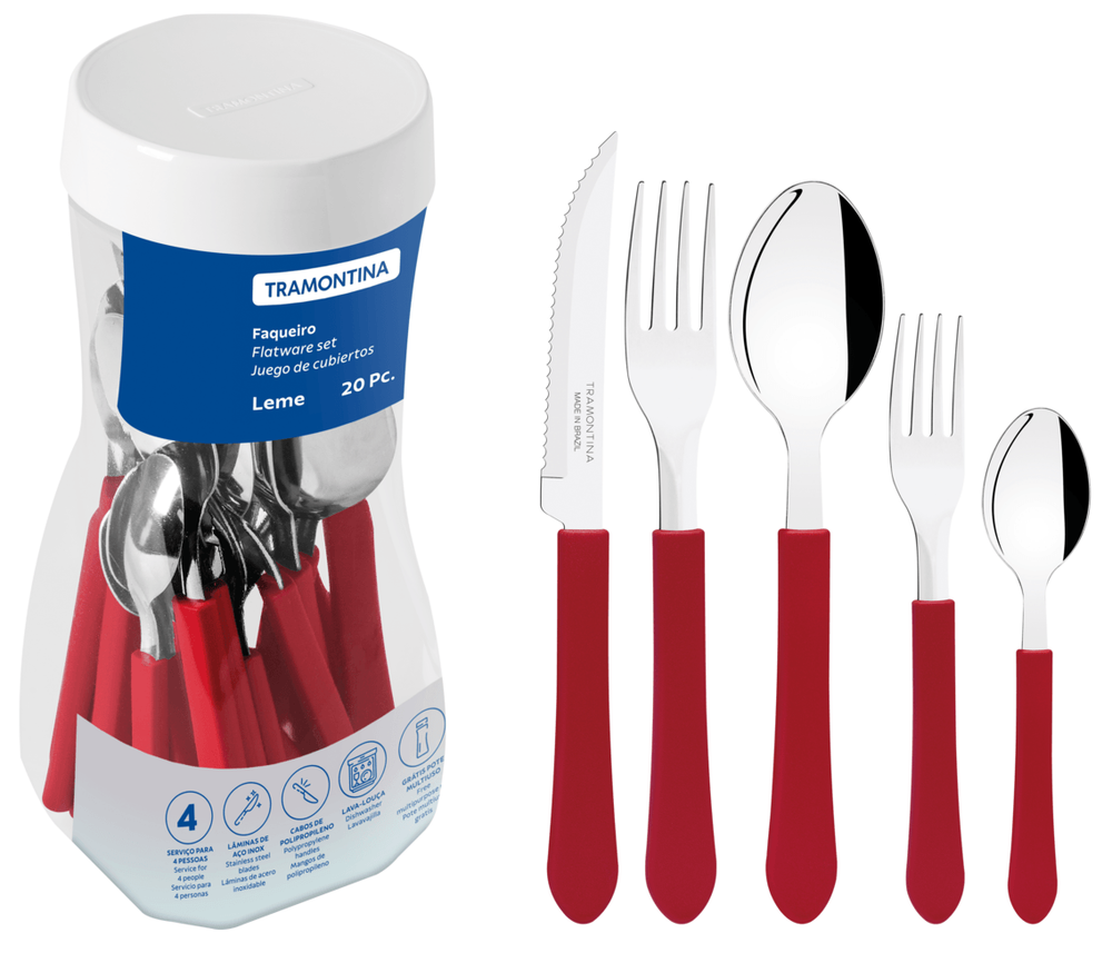 Cubierto Tramontina 23198718 leme 20piezas rojo