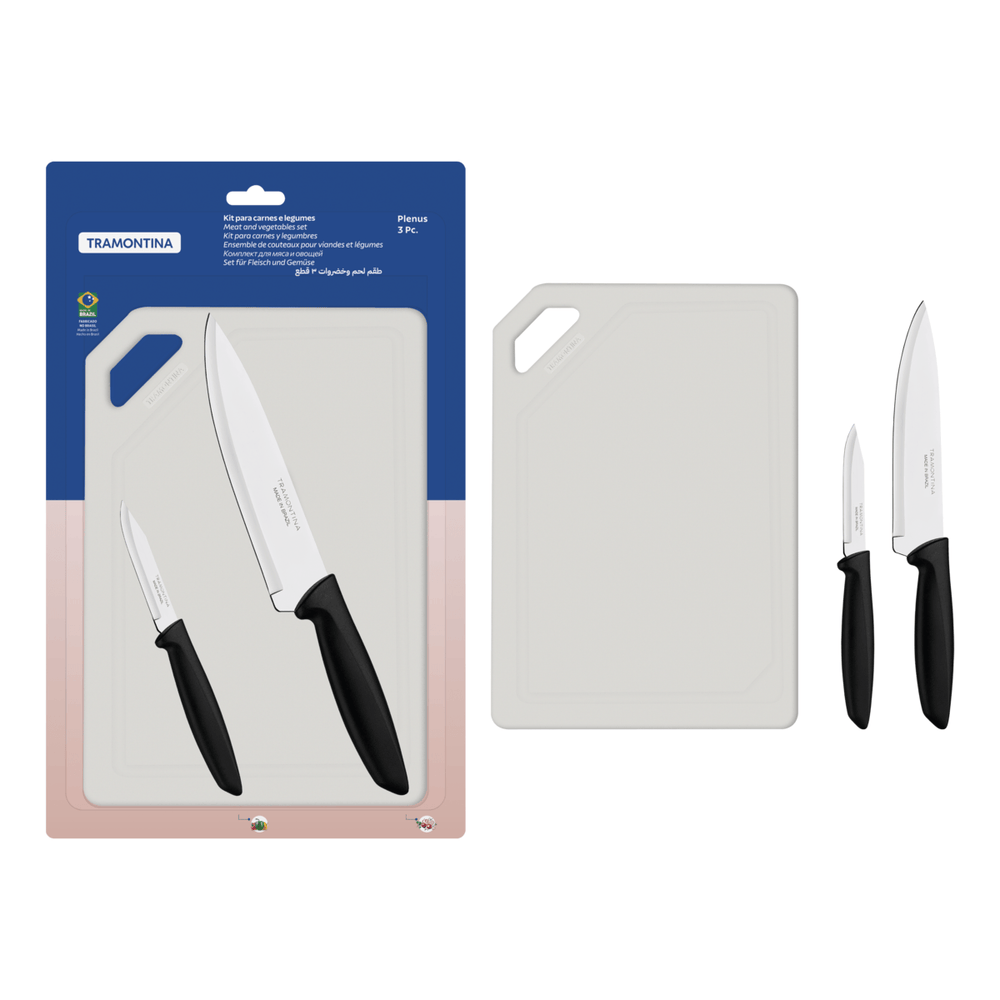 Recomendaciones de uso Antes del primer uso, lave bien las piezas y séquelas. Tenga cuidado al manejar productos cortantes y perforantes y mantégalos fuera del alcance de los niños. Para mayor durabilidad de los cubiertos, se recomienda secarlos bien antes de guardarlos, incluso cuad aún después de haber sido lavados en lavavajillas. Para el desecho de producots y embalajes, siga las orientaciones de reciclaje vigentes. Informaciones Generales Tablas de corte de polipropileno con protección antimicrobiana. La láminas de acero inoxidable tiene mayor durabilidad del filo debido al tratamiento térmico. El mangos de polipropileno posee más resistencia y durabilidad. Es apto para lavavajillas para facilitar su rutina diaria. Especificaciones TécnicasAltura 39,3 cm Ancho 3,3 cm Longitud 24,5 cm Peso 420 Gramas