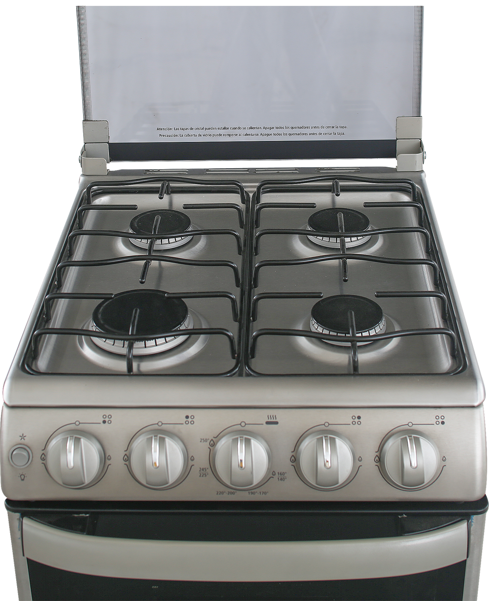 La estufa de piso Mabe de 20 pulgadas color Acero inoxidable, modelo EM5046CAIX0 con copete y cubierta de acero inoxidable, capelo que hará lucir más tu cocina, 2 Parrillas de fundición, 4 quemadores Tech (3 estándar y 1 jumbo), encendido Electrónico en Quemadores y manual en horno y cuenta con termocontrol.