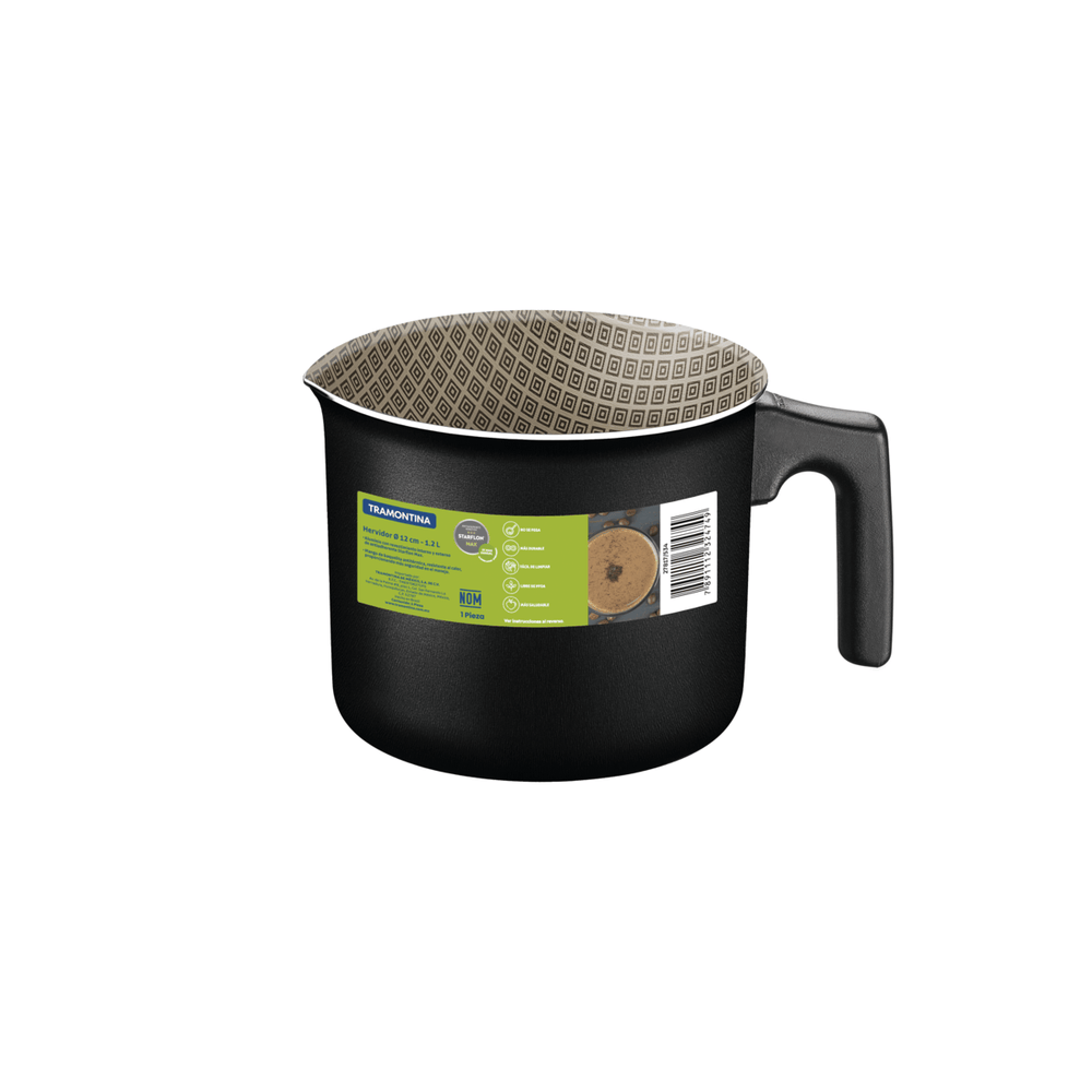 Recomendaciones de uso La capacidad volumétrica máxima de cocción es de 3/4 de la capacidad total de la pieza. Ponga el mango del utensilio hacia el centro de la cocina. En cocinas con rejilla, centralice la pieza sobre la llama o fuente de calor y alinee el mango a la rejilla. Los utensilios calientes deben estar fuera del alcance de los niños. Antes del primer uso, lave con esponja suave, jabón neutro o detergente líquido. Después de secar, unte el área interna con aceite o grasa y lleve al fuego por uno o dos minutos. Deje enfriar y lave nuevamente. Su utensilio Starflon está listo para el uso con o sin grasa, siempre a fuego bajo o mediano (nunca superior a 260 °C). Para mover los alimentos use solamente utensilios de silicona, nylon o madera. Con el uso, el mango puede aflojarse debido a la dilatación normal de los materiales. Vuelva a apretarlos solamente lo suficiente, sin forzar. Limpieza: Evite la inmersión del utensilio caliente en agua fría. Nunca utilice productos abrasivos durante el lavado. Si deja quemar alimentos, humedezca el área y reserve hasta que pueda eliminar los residuos pegados con esponja y jabón. Para el descarte del producto y del embalaje, siga las orientaciones de reciclado vigentes. Informaciones GeneralesCuerpo de aluminio con espesor de 1,4 mm, que brinda una cocción rápida y uniforme. Revestimiento interno y externo de antiadherente Starflon Max, que no deja que se peguen los alimentos y es fácil de limpiar, más durable y no perjudicial para la salud, ya que está libre de PFOA. Mango de baquelita antitérmica que proporciona seguridad durante la manipulación. Puede ir al lavavajillas para facilitar su rutina diaria. Especificaciones TécnicasAltura10,3 cm Ancho13,8 cm Longitud18,4 cm Peso240 Gramas