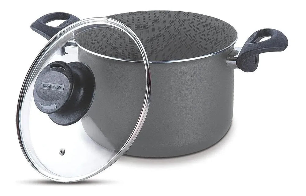 La olla alta Tramontina Paris 20530/328 combina diseño funcional y alta calidad. Está construida en aluminio de 1.8 mm y cuenta con un revestimiento antiahderente Starflon Max tanto en el interior como en el exterior, garantizando una limpieza fácil y cocción uniforme sin uso de aceites. Su tapa de vidrio templado con borde de acero inoxidable permite visualizar los alimentos durante la cocción y cuenta con una salida de vapor para mayor seguridad. Las asas y el pomo son de material antitérmico para manejo seguro, incluso cuando está caliente. Es apta para cocinas de gas, eléctricas y vitrocerámicas , e incluso apta para lavavajillas. Su tamaño de 28 cm de diámetro y capacidad de 11.8 litros la hace perfecta para preparar guisos, sopas o platillos grandes para la familia.