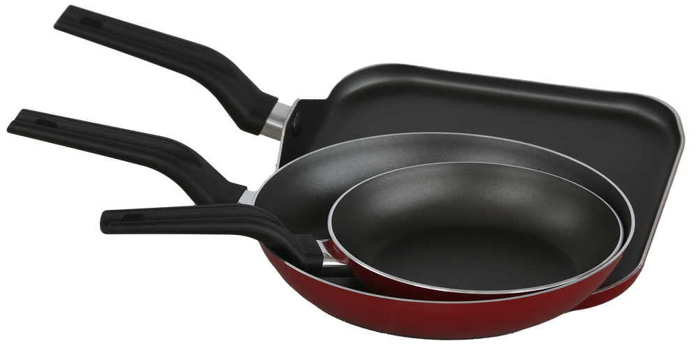 Cocina y come lo que mas te gusta con este práctico set de Sartenes Ekco modelo 29197 de 20 y 26 Centimetros y un comal de 28 x 28 color Rojo