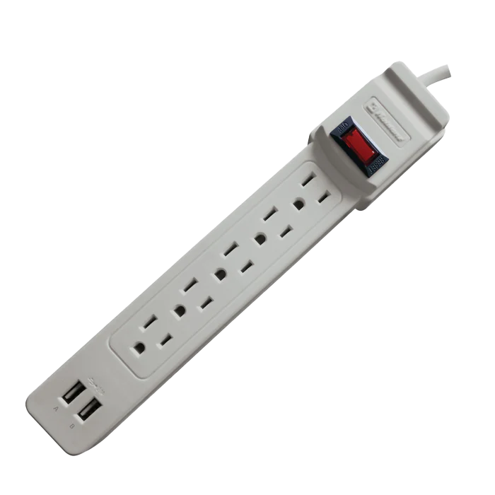 Equipado con una capacidad de 550 Joules, protege tus equipos contra picos de voltaje y sobretensiones transitorias. Su switch reset iluminado de 10 A permite un fácil restablecimiento tras una sobrecarga, y su cable de 45 cm ofrece flexibilidad en la ubicación del supresor. Además, cuenta con una clavija de alimentación de 90°, que evita daños y estrés en el cable, prolongando su vida útil.