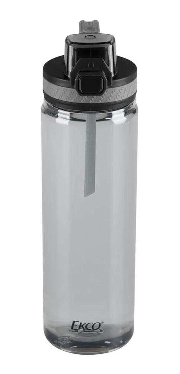 Botella Ekco de 750 ml en plástico Tritan libre de BPA, ligera y práctica para llevar agua o bebidas a cualquier lugar.