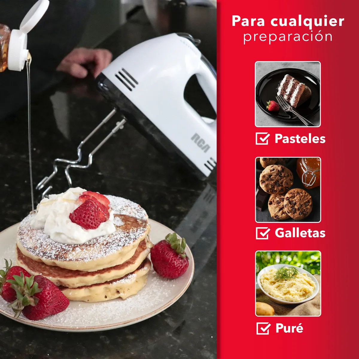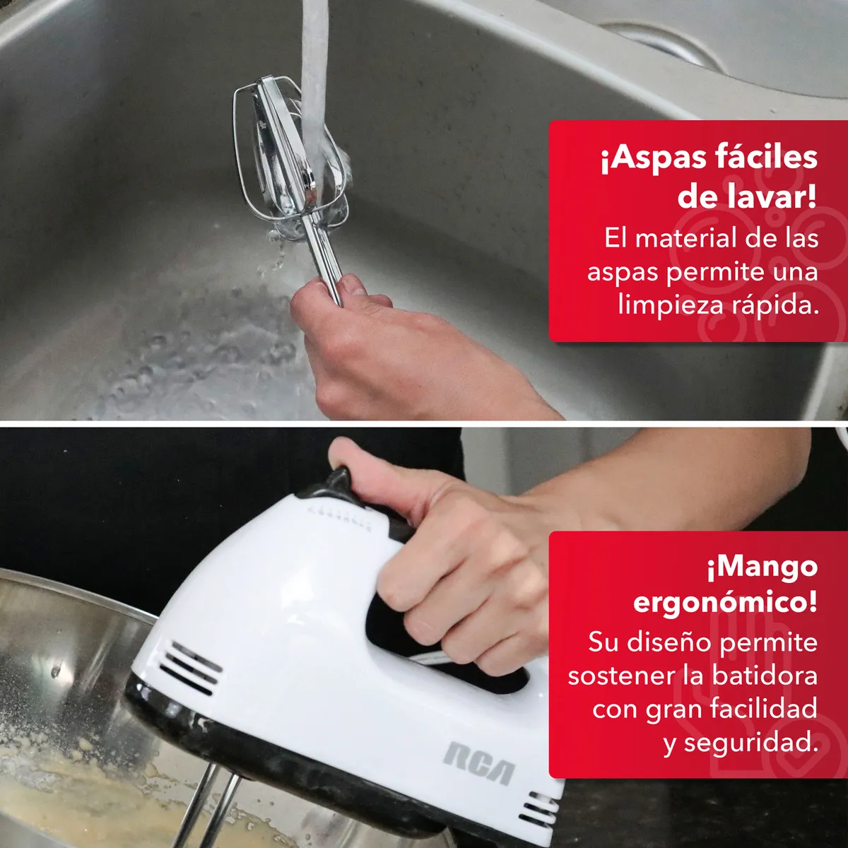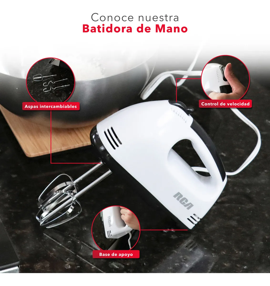 Batidora de mano RCA RC-093, 7 velocidades, 100W de potencia, color blanco.