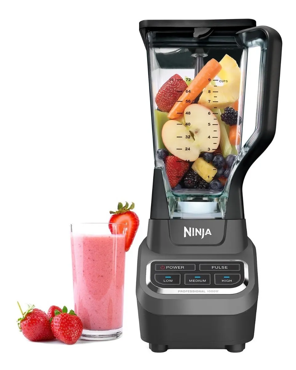La licuadora Ninja BL610 combina un motor de 1000W con una jarra de 2.1 litros, ideal para preparar smoothies, salsas y mezclas densas con facilidad. Ofrece 3 velocidades que se adaptan a distintos ingredientes, y su diseño moderno en gris y negro añade estilo a cualquier cocina.