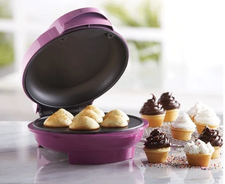 Máquina Brentwood TS‑252 Muffins (rosa): hornea hasta 7 muffins estándar en minutos con su potencia de 600–1000 W, diseño compacto y placas antiadherentes para una limpieza sencilla.