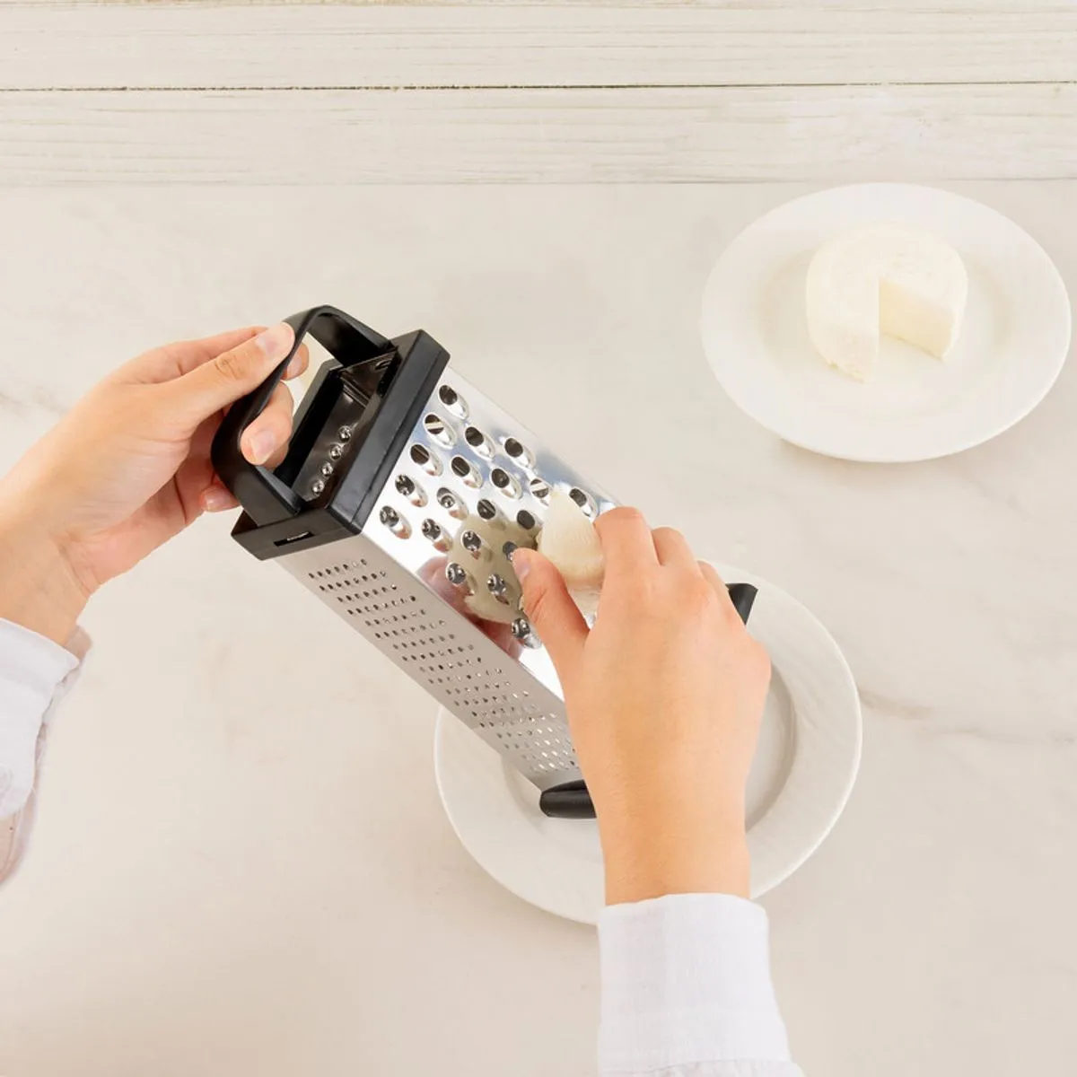 Ideal para rallar, rebanar o triturar con facilidad. Su diseño de cuatro caras permite múltiples cortes en un solo utensilio.